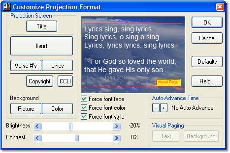 Paging dialog, a PlayList in Projection mode, and the Customize